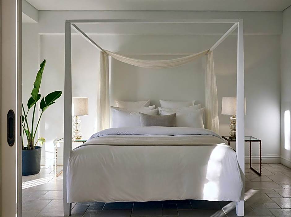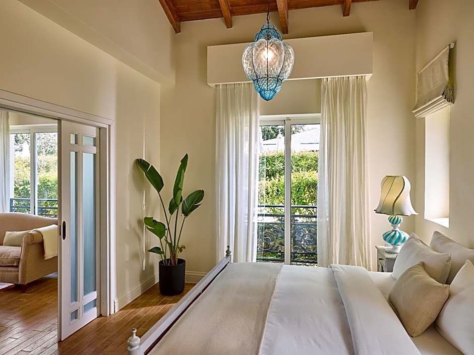 These spacious suites overlook the green gardens. The 2-story bungalows feature a separate living room which can be either a relaxing lounge or a 2nd bedroom. The master bedroom is furnished with a romantic canopy bed, complete with bleached-wood furniture. Walk-in wooden wardrobes and a bathroom with double sinks combines modern comforts with appealing rustic touches. Step out onto a covered porch and balcony to enjoy the views of the Ionian Sea and the pristine beach. Please note that this room type cannot accommodate children.